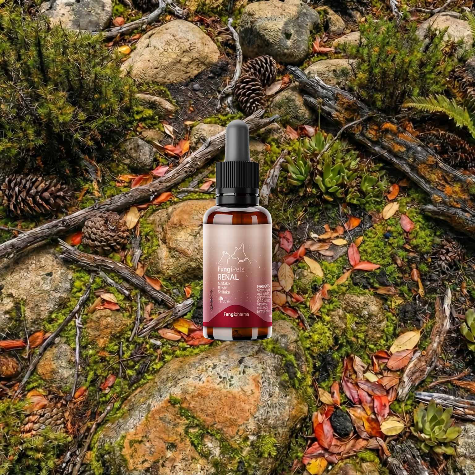 FungiPets – Renal es un suplemento natural diseñado para apoyar la función renal y el equilibrio general de tu mascota. Su mezcla de Reishi, Maitake y Shiitake aporta compuestos antioxidantes e inmunomoduladores que favorecen la depuración, reducen la inflamación y ayudan a mantener una función renal saludable de manera suave y natural.